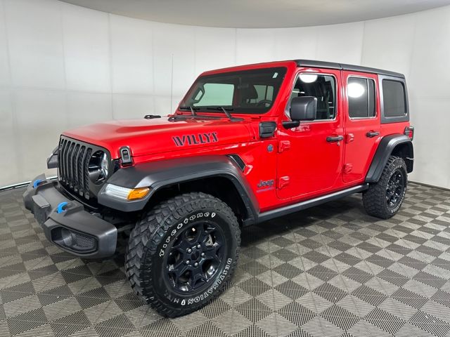 4xe 4-Wheel Drive Swing Gate Decal, 97 MPH Vehicle Max Speed Calibration, Anti-Spin Differential Rear Axle, Black Grille, Cold Weather Group, Convenience Group, Front LED Fog Lamps, Heated Front Seats, Heated Steering Wheel, LED Headlamp & Fog Lamp Group, LED Premium Reflector Headlamps, Molded-In-Color Fender Flares (2-Piece), MOPAR All-Weather Floor Mats, Normal Duty Suspension, Quick Order Package 29W Willys, Remote Start System, Universal Garage Door Opener, Wheels: 17" x 7.5" Black Aluminum, Willys, Willys 4xe Hood Decal.