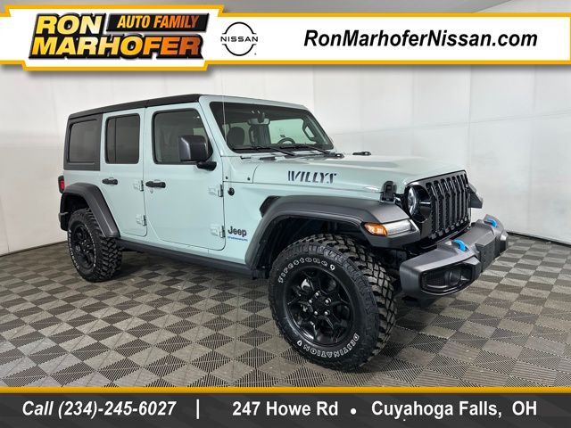 1-Year SiriusXM Guardian Trial, 4G LTE Wi-Fi Hot Spot, 4xe 4-Wheel Drive Swing Gate Decal, 5-Year SiriusXM Traffic Service, 5-Year SiriusXM Travel Link Service, 8.4" Radio Group, 8.4" Touchscreen Display, 97 MPH Vehicle Max Speed Calibration, Anti-Spin Differential Rear Axle, Apple CarPlay, Auto-Dimming Rear-View Mirror, Black Grille, Cold Weather Group, Convenience Group, Emergency/Assistance Call, For Details, Visit DriveUconnect.com, Front LED Fog Lamps, Google Android Auto, GPS Antenna Input, GPS Navigation, HD Radio, Heated Front Seats, Heated Steering Wheel, Integrated Center Stack Radio, Integrated Voice Command w/Bluetooth, LED Headlamp & Fog Lamp Group, LED Premium Reflector Headlamps, Molded-In-Color Fender Flares (2-Piece), MOPAR All-Weather Floor Mats, Normal Duty Suspension, Off-Road Info Pages, Quick Order Package 29W Willys, Radio: Uconnect 4C Nav w/8.4" Display, Remote Start System, SiriusXM Traffic Plus, SiriusXM Travel Link, Universal Garage Door Opener, USB Host Flip, Wheels: 17" x 7.5" Black Aluminum, Willys, Willys 4xe Hood Decal.